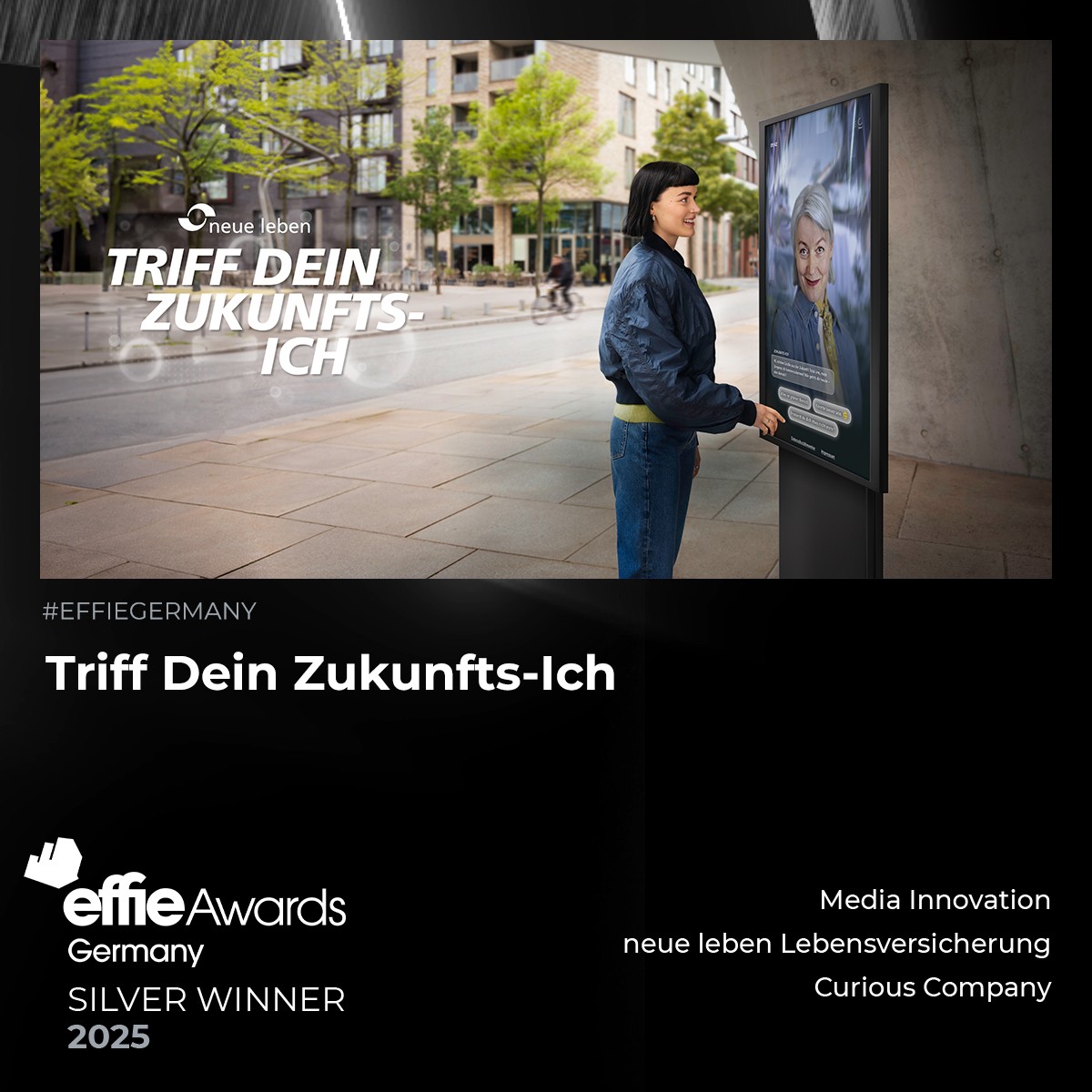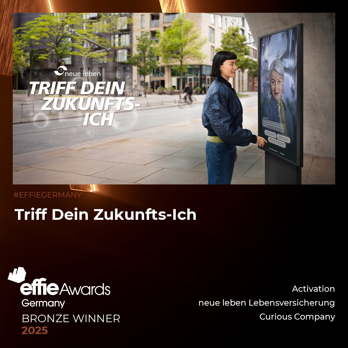 Mit emotionaler Ansprache, KI-gestützter Technologie und einem gesellschaftlich hochrelevanten Thema hat die neue leben mit der erfolgreichen Kampagne „Triff dein Zukunfts-Ich“ nicht nur Kund:innen und Sparkassen begeistert – sondern auch die Kreativbranche überzeugt. So wurde der Lebensversicherer mit dem German Brand Award in Gold in der Kategorie Excellence in Brand Communication – Digital Campaign ausgezeichnet und erhielt den Bronzenen Nagel des Art Directors Club (ADC) in der Kategorie AI Driven Experience. Die ausgezeichnete Kampagne zeigt, wie moderne Altersvorsorge mithilfe einer kreativen und wirkungsvollen Vertriebsstrategie kommuniziert wird – und das branchenübergreifend.